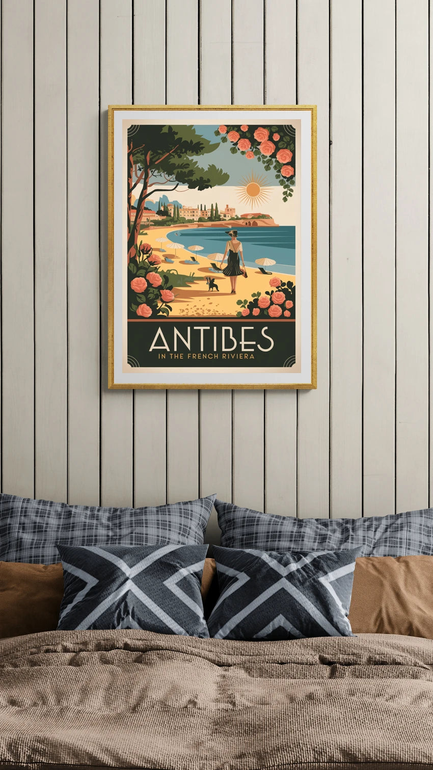 Affiche rétro – Élégance sur une plage méditerranéenne