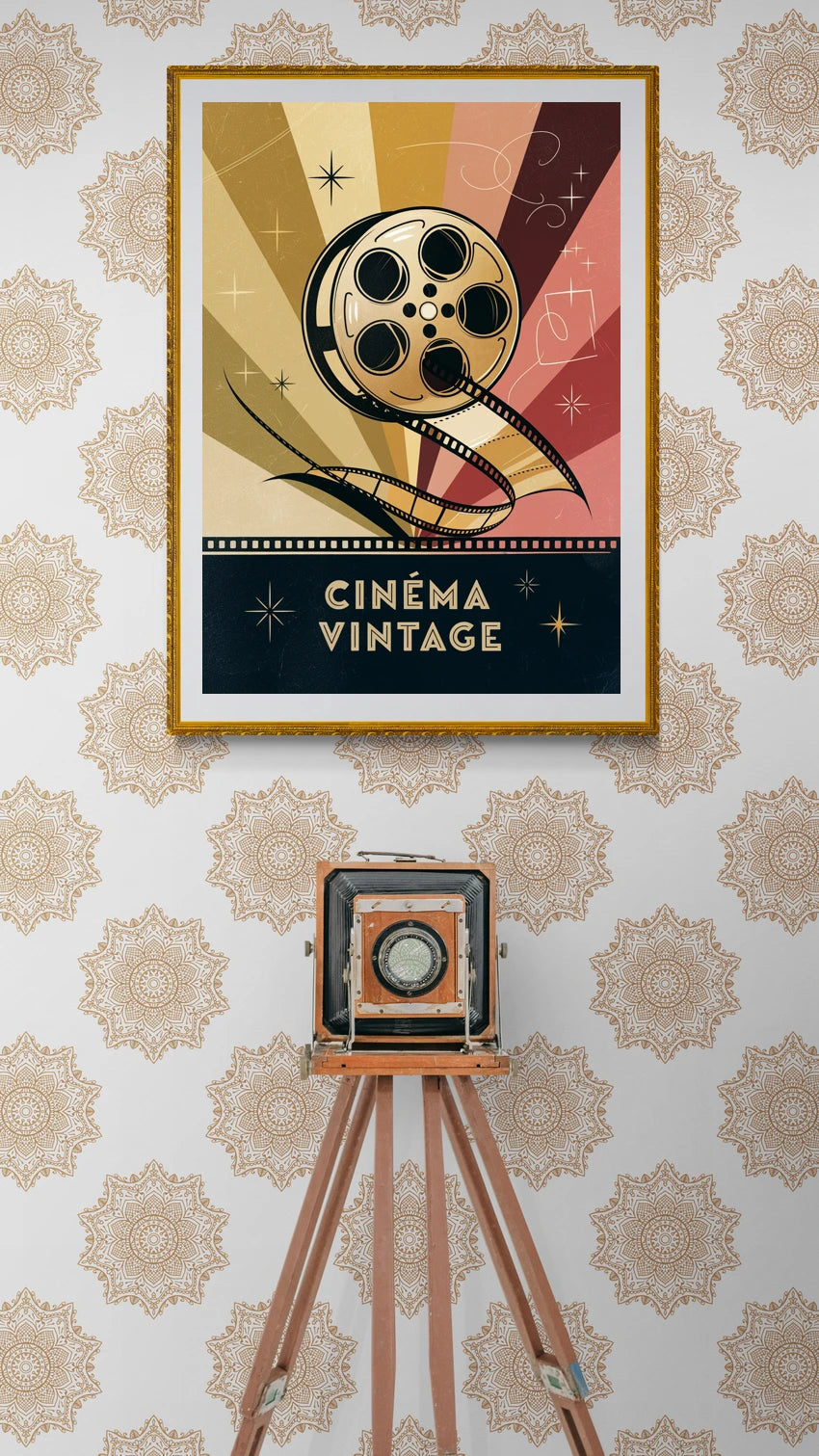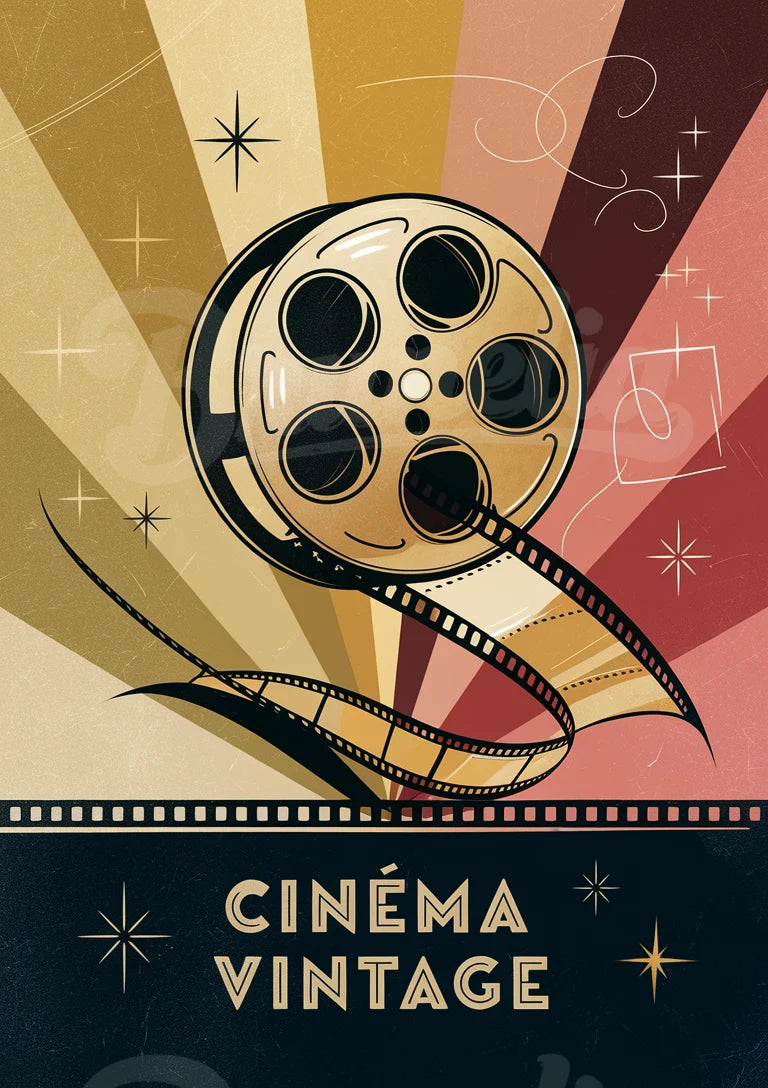 Affiche Film Vintage – Bobine Dorée et Arrière-Plan Coloré