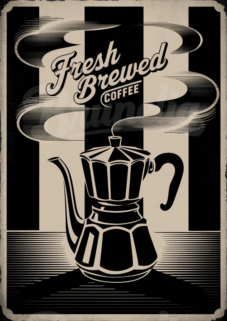 Illustration vintage cafetière italienne - Style rétro chic. Affiche vintage imprimée en Europe sur papier premium 180g, 4 formats A4 à A1 (14,95€ à 39,95€), finition mate. Livraison offerte dès 59€, satisfait ou remboursé 14 jours.