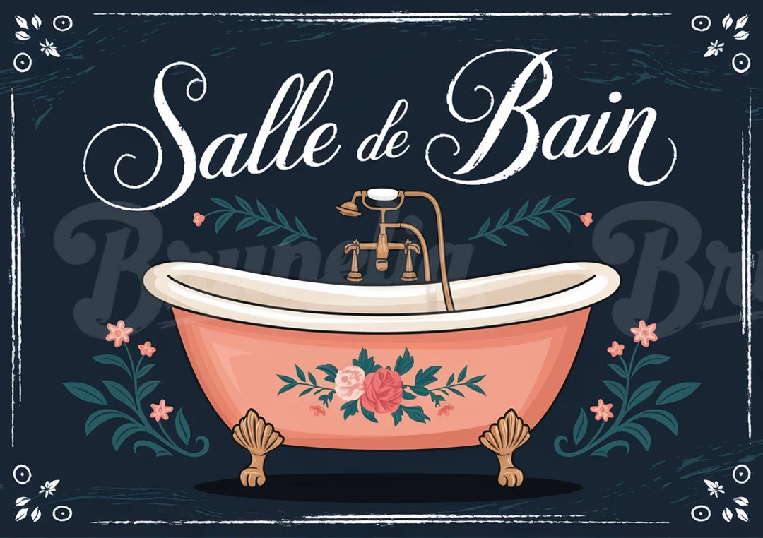Illustration Vintage – Baignoire Rose et Or Motifs Floraux. Affiche vintage imprimée en Europe sur papier premium 180g, 4 formats A4 à A1 (14,95€ à 39,95€), finition mate. Livraison offerte dès 59€, satisfait ou remboursé 14 jours.