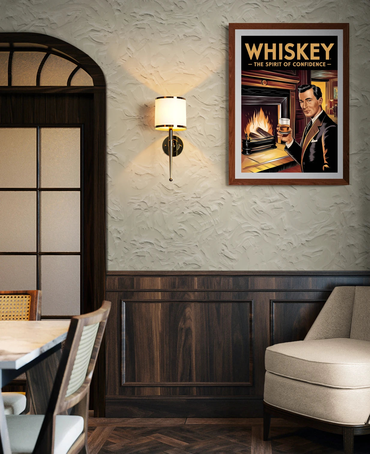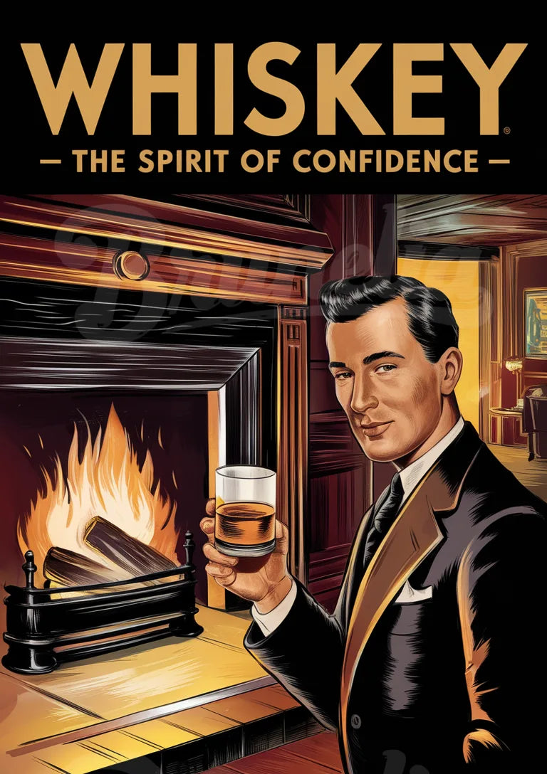 Illustration Élégante – Homme au Whisky près d'une Cheminée