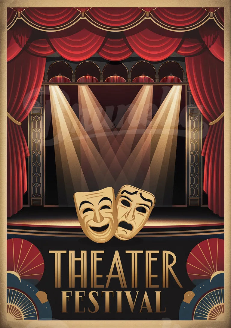 - Affiche - Scène de Théâtre Éclairée avec Masques Classiques