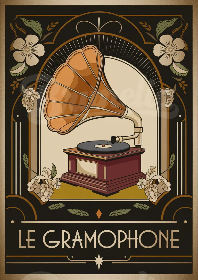 - Affiche rétro Gramophone floral – Style art déco