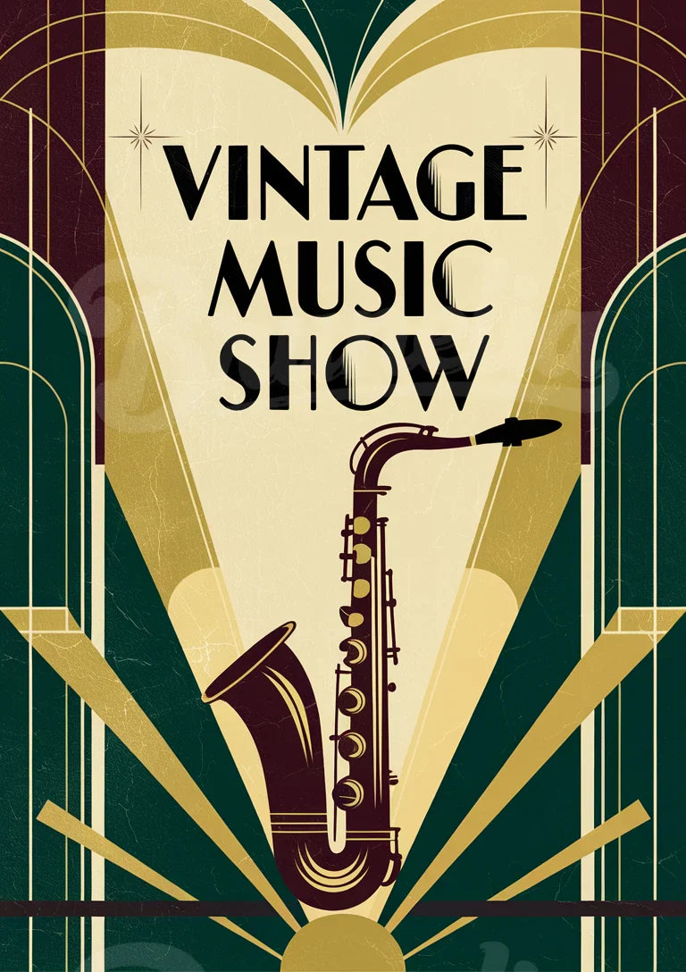 - Affiche Art Déco Saxophone – Ambiance Musicale Chic
