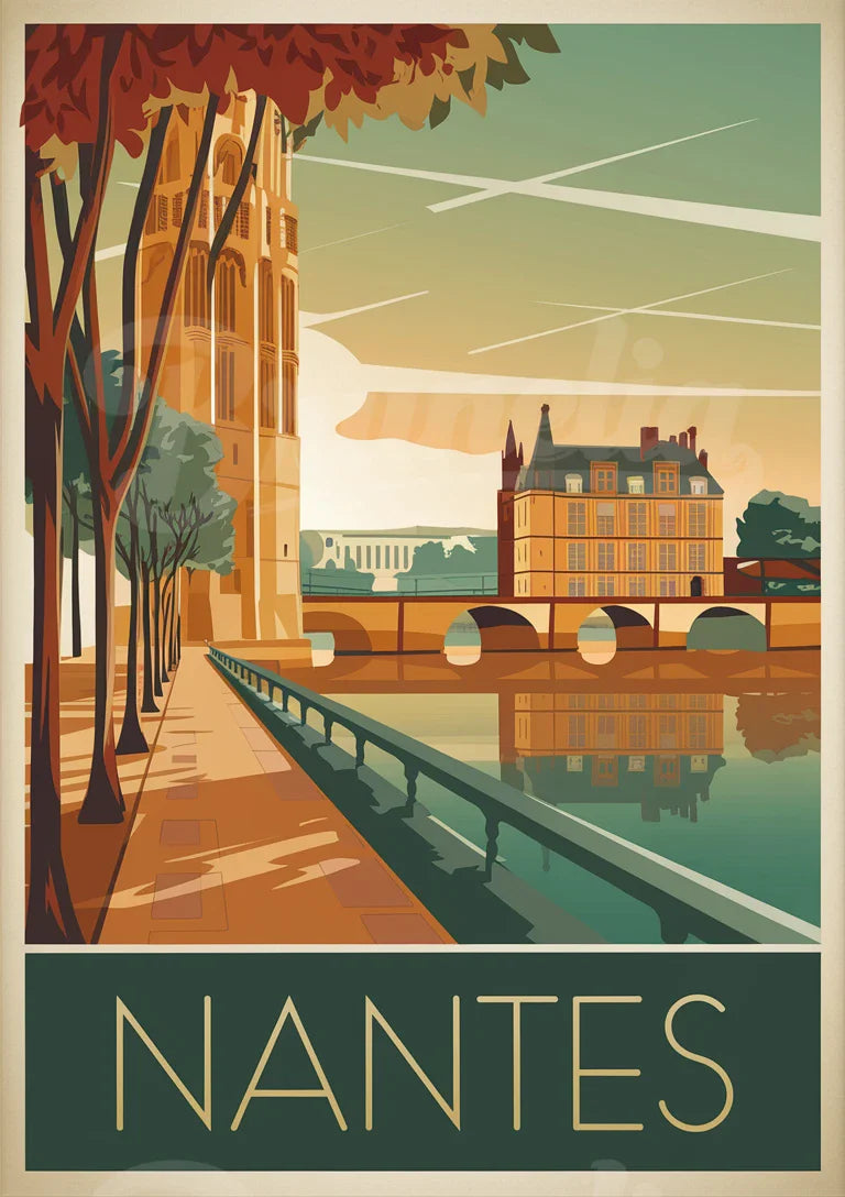 - Illustration urbaine rétro – Promenade et bateau à Nantes