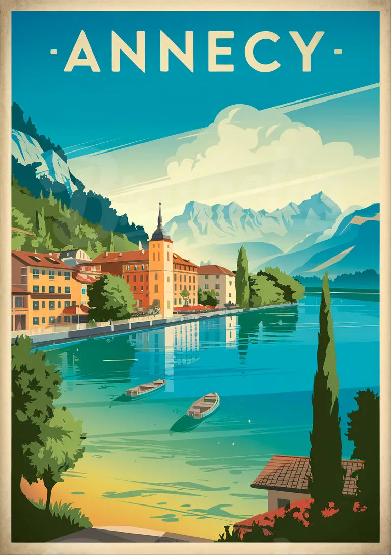 - Affiche artistique – Lac paisible et montagnes d'Annecy